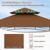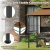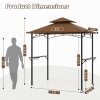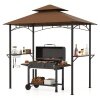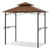 Outdoor Double-Tiered Grill Gazebo Canopy with 2 Shelves and 7 Hooks-Coffee