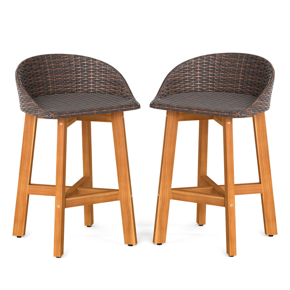 ● All-weather PE Rattan Seat: Featuring sun-resistant and fade-proof faux rattan seats, these bar chairs are perfect for outdoor use with no concerns. The waterproof material ensures durability and easy upkeep, making maintenance a breeze.