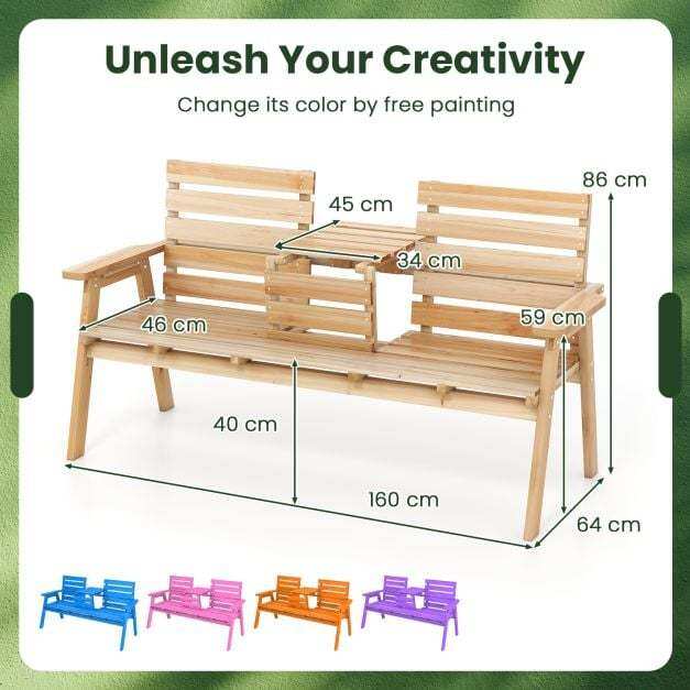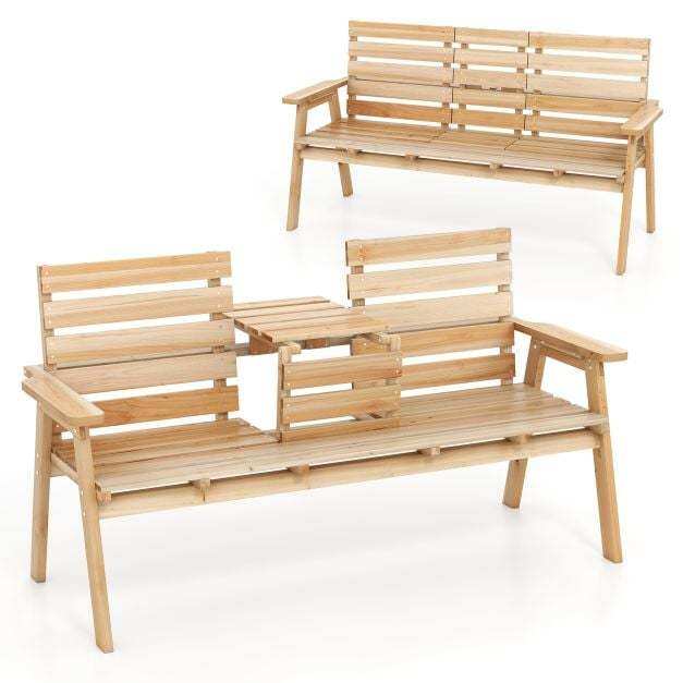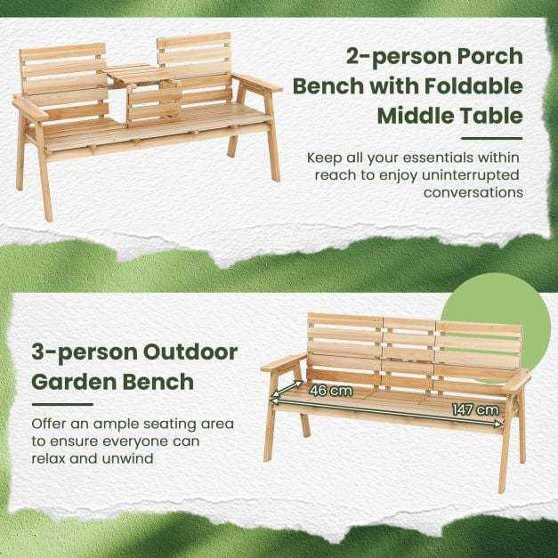 Foldable Middle Table: This outdoor garden bench features a middle table, which keeps the needed items within reach. It can be folded as well to create more seating space.The safety latch prevents accidental unfolding.