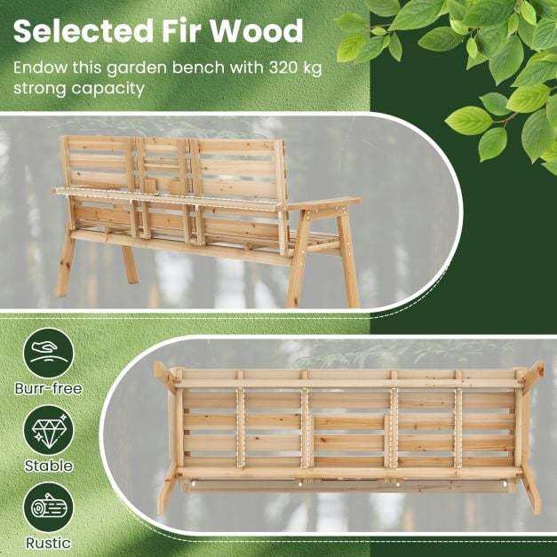 Selected Fir Wood: Crafted from high-quality fir wood with natural wooden texture and grain, this patio garden bench not only ensures a longer lifespan but also adds a touch of rustic charm, making it a seamless addition to outdoors.