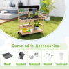 【Interactive Play Features】This garden kitchen playset provides a sensory experience with a water tank including a working faucet, 2 stoves, rotating knobs with clicking sounds and a removable sink. It also includes 3 flower pots to encourage little gardeners to grow and care for plants.