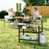 ● Robust and Stable Construction: Crafted with zinc-iron alloy tabletops, the food prep station is not only rustproof but also heat-resistant and stain-resistant. The robust galvanized metal frame provides exceptional support and durability, while adjustable foot pads ensure stability on uneven surfaces.