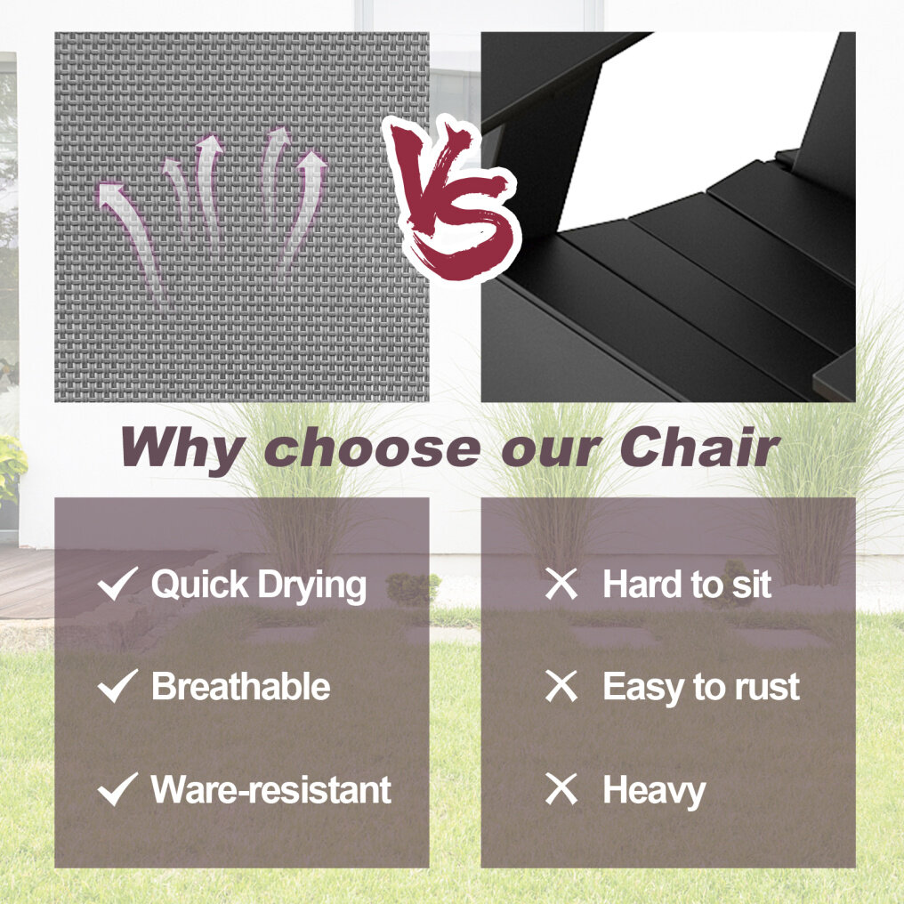 ● Multi-purpose Patio Dining Chair: More than just a dinging chair, this sling chair can also be used in garden, balcony, poolside or yard. With the simple and modern exterior design, this patio chair can be the perfect addition to your outdoor relaxing space.