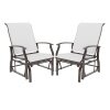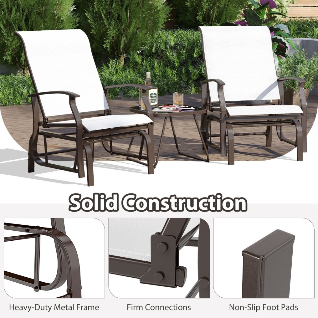 ● Excellent Stability: Thanks to the heavy duty metal frame and back support bar, the patio rockers remain stable on different surfaces. Each chair supports up to 350 lbs. Moreover, the anti-skid foot pads bring enhanced steadiness.