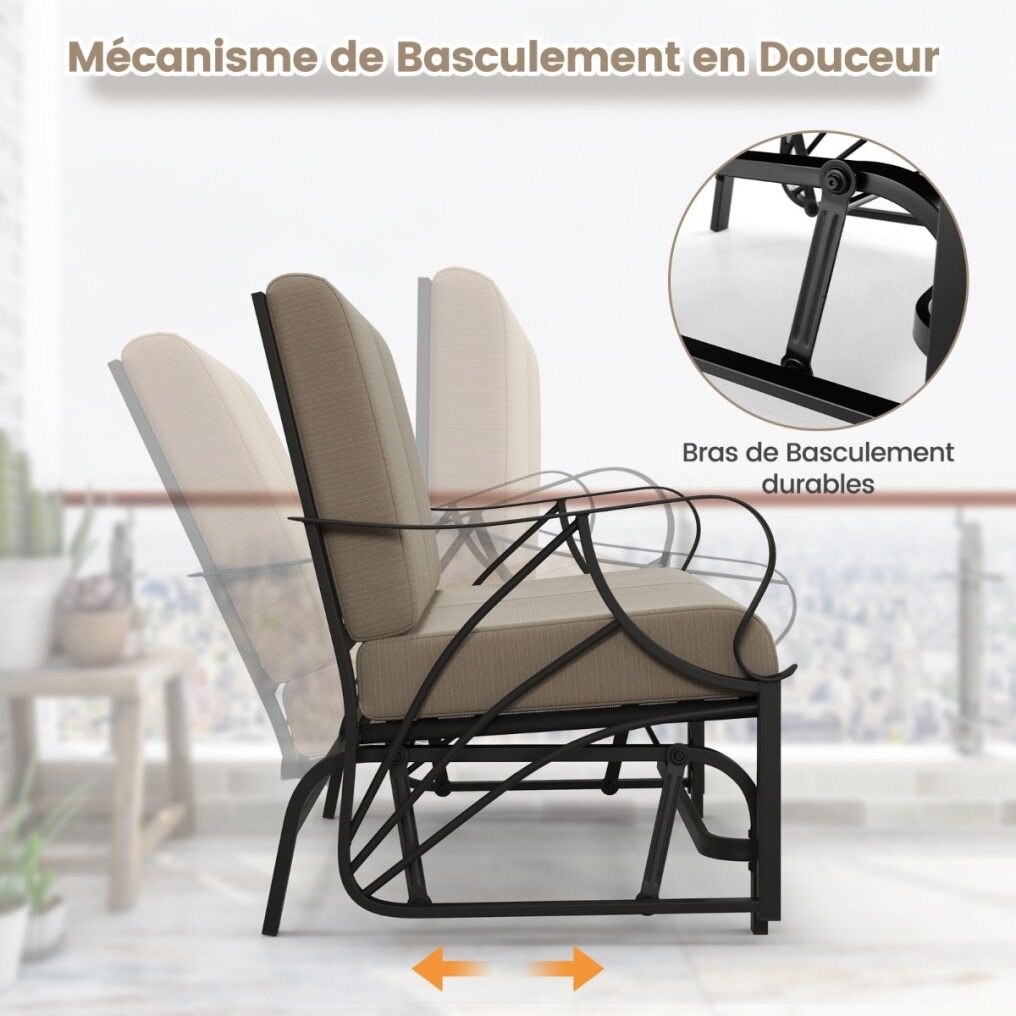 If you are looking for a way to spend your outdoor leisure time, then our multi-application rocking chair is worth your attention! Crafted with high-quality metal pipes, our patio glider features a long service life with 300 kg of weight capacity. Additionally, thanks to the ergonomic design and user-friendly details, the curved armrest and breathable backrest, you will feel extremely comfortable when sitting on it. Not to mention the smooth gliding function which is both safe and relaxing. Moreover, designed with an elegant appearance and unique seat pattern, the chair will fit in well to your garden, patio or any outdoor space. Order now to add a touch of coziness to your outdoor life!