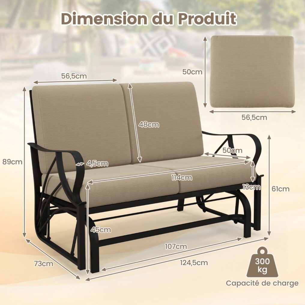 Sturdy Construction: Crafted with sprayed metal pipes, our patio glider features a durable and long-lasting frame that can support up to 300 kg of weight. Apart from that, the glider chair features non-slip footpads for extra stability during your break time.