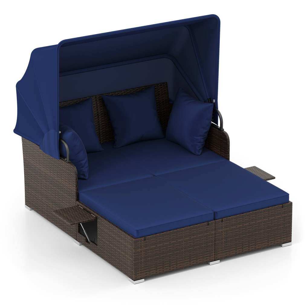 ● Retractable and Functional Canopy: As the highlight of this daybed, the retractable canopy allows you to relax more comfortably without scorching sunlight. The pneumatic rod makes the adjustment easy and safe. Furthermore, the fixing ropes are functional to keep the canopy in right place when the canopy is retracted.