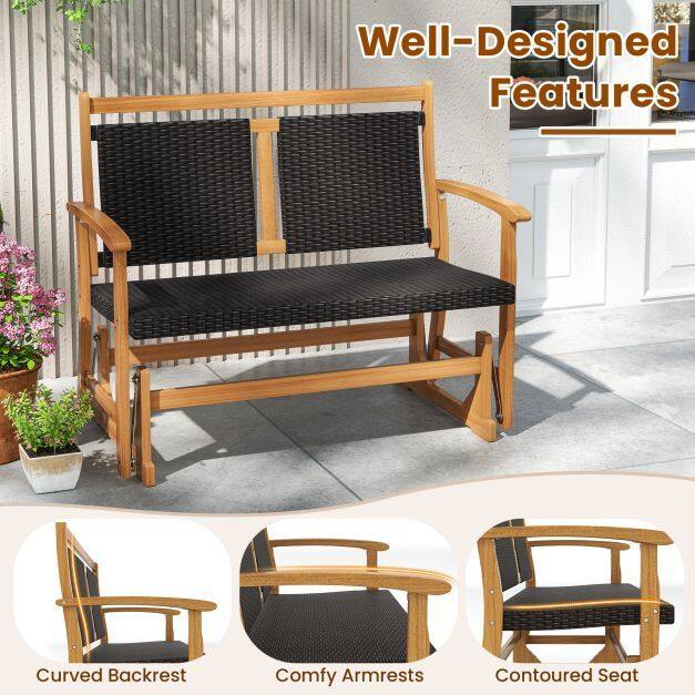 ● Exquisite Rattan Elegance: The seat and back of the gliding rocker are crafted from premium PE rattan which is well-woven in mix brown color. The elegant rattan is also breathable, sunproof and anti-fading, ensuring long-lasting outdoor use.