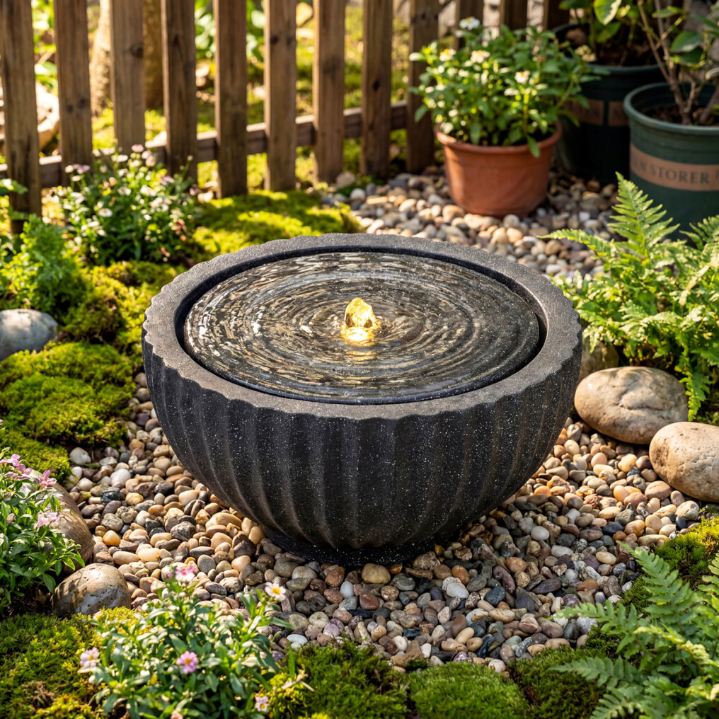● Versatile Space Solution: With an extra-long 9.5 ft cord and a lightweight 17.5 lbs body, this small fountain sets up quickly in gardens, patios, offices, or living rooms. Its compact 18" x 9.5" (Dia. x H) size fits perfectly in small spaces, balconies, and porches, offering an excellent patio decoration.