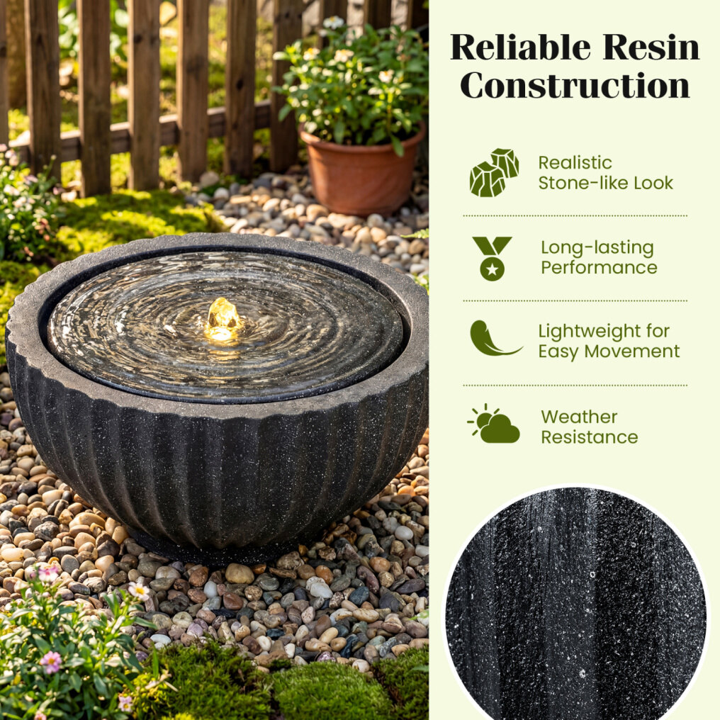 ● Reliable Resin and Fiberglass Construction: Crafted from premium resin and fiberglass, the round sphere water fountain ensures excellent weather resistance and long-lasting performance. Its curved ridges with a realistic gray stone rock finish bring a sophisticated touch of natural beauty to your home or yard.
