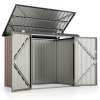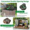 Double Opening Design: This garden storage shed features a top flip cover, which is supported by premium hydraulic cylinder and can be easily opened. Besides, the 2 opening doors provide extra flexibility for your convenience.