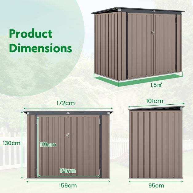 Easy Maintenance & Dimensions: The galvanized steel requires minimal upkeep, you can wipe the surface with a damp cloth. The shed's dimensions (172 x 95 x 130 cm) make it a perfect fit for most backyards. Plus, it also comes with 2 pair of gloves.
