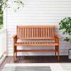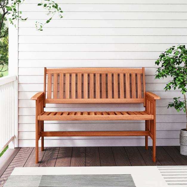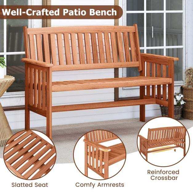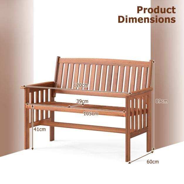 ● Stable Construction: This patio wood bench boasts a sturdy frame, offering reliable and stable seating that can withstand daily outdoor use. Moreover, the reinforced crossbar ensures extra stability.