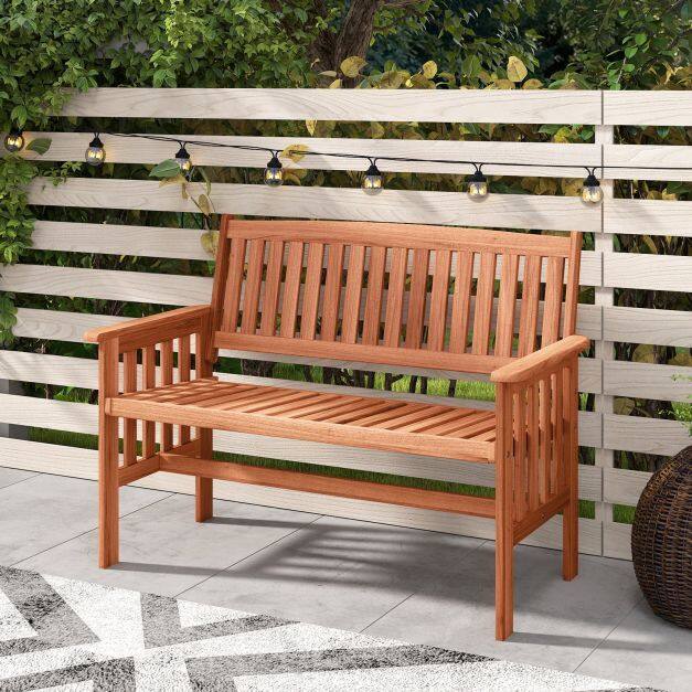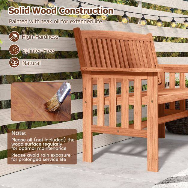 ● Premium Wood Charm: This outdoor bench is crafted from high-quality wood that showcases natural beauty while ensuring a splinter-free surface for a smooth touch. Please regularly oil (not included) the wood surface for optimal maintenance.