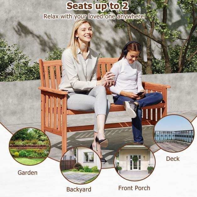 ● Spacious 2-seat Space: The garden bench boasts an ample seating area, designed to comfortably accommodate 2 people, making it an ideal spot to enjoy outdoor leisure time with family or friends.