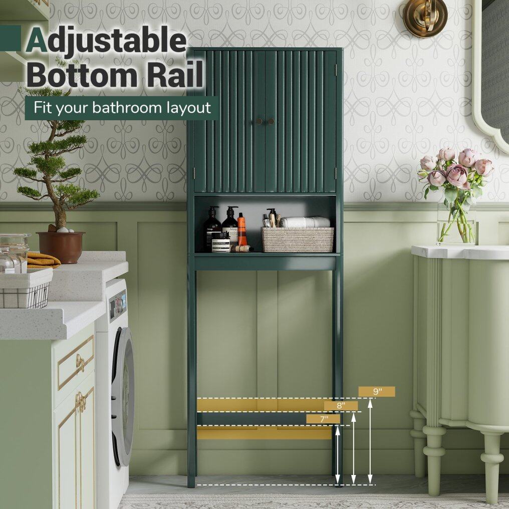 ● Elegance Meets Convenience: Equipped with double fluted doors and exquisite metal handles, this freestanding above toilet cabinet brings a touch of elegance to your bathroom. Besides, the magnetic catch keeps doors firmly closed, offering secure protection for your toiletries.