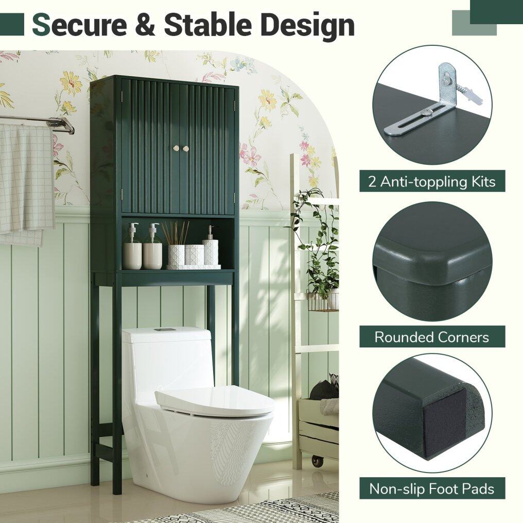 ● Stable Structure & Reliable Use: This freestanding over the toilet cabinet includes 2 anti-toppling kits for enhanced security. The round corners provide added protection for you and your family, while the anti-slip foot pads prevent floor scratches.