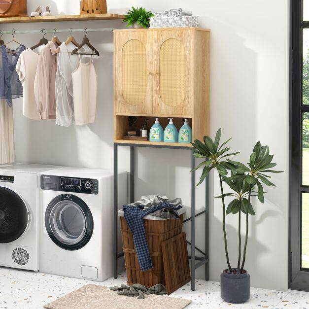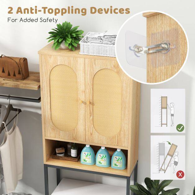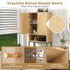 ● Exquisite Rattan Double Doors: The rattan doors on this storage cabinet add a touch of elegance to your bathroom decoration, which is stylish while easy to maintain. Plus, the golden cabinet door knobs and soft close hinges bring convenience when opening and closing the door.