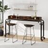 Versatile Use: This versatile overbed table serves as a bar table, dining table, laptop cart, office standing desk, or hospital table, depending on your needs. The rustic wood grain and black metal frame offer an industrial touch that enhances any space.