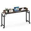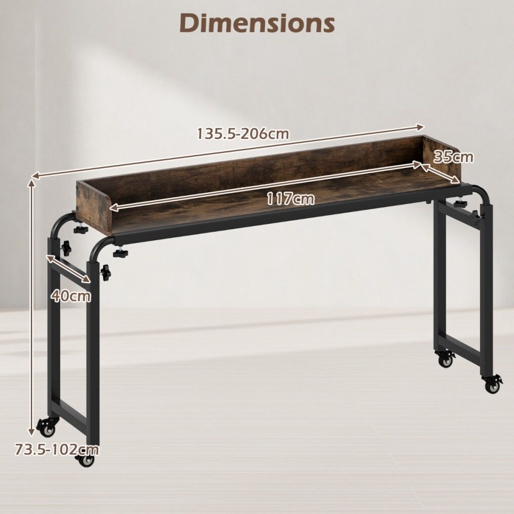 This mobile overbed table features an adjustable height (73.5-102.5 cm) and length (135.5-206 cm), making it a perfect fit over queen-size beds or seating areas. Thanks to its large, high-barrier tabletop, the overbed table provides a secure platform for working, dining, or entertaining. For easy movement and a secure hold, four lockable casters position the table wherever you need it. Built to last, this rolling computer desk is supported by a sturdy metal frame. The laptop cart is designed to provide convenience and functionality in a variety of settings, including home and office.