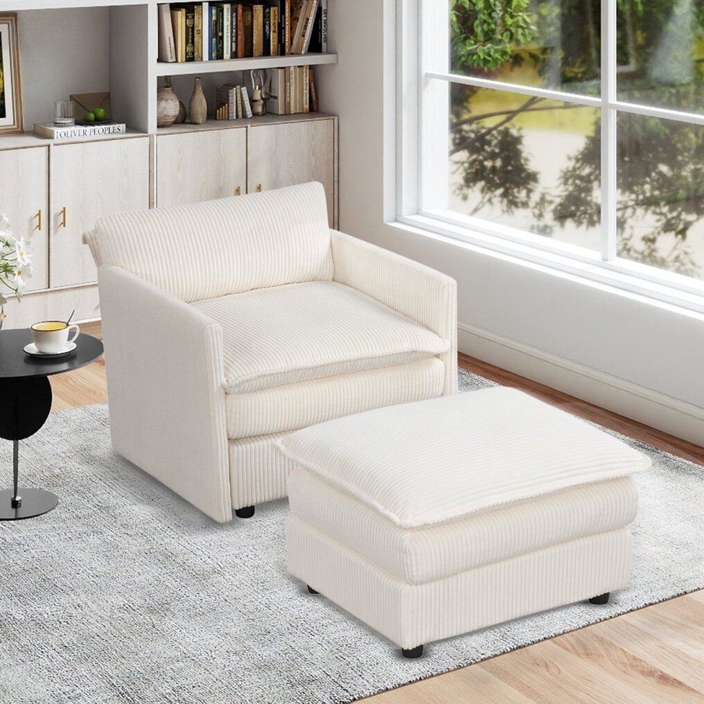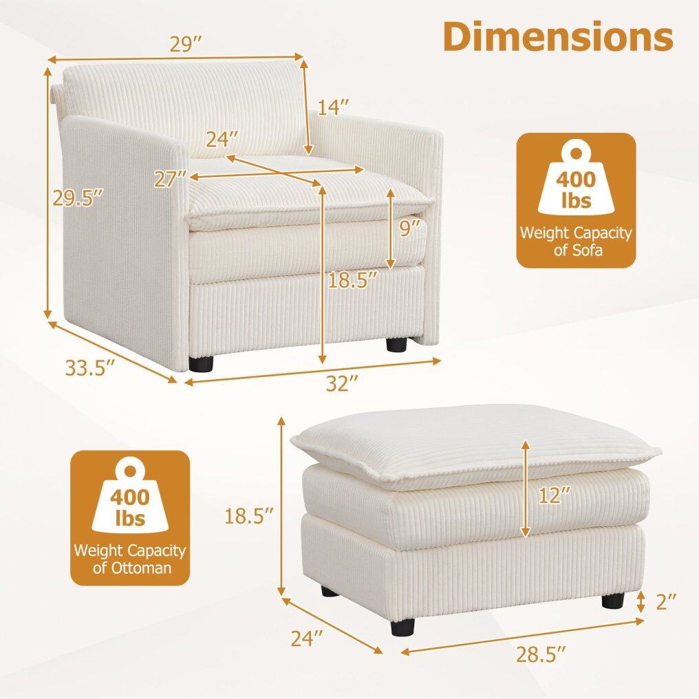 ● Firm & Comfortable Support: Covered with soft and breathable corduroy fabric, this accent chair with ottoman offers a luxurious feel while keeping you comfortable all day long. The high-density sponge cushions provide superior support and plush softness.