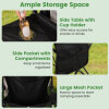 All-in-one Convenience: The camping chair features a side table complete with a cup holder, ensuring your beverages, snacks, or digital devices are within reach. For additional storage, the side mesh pocket and the rear large mesh pocket offer ample space to store your books, or essential camping gear.