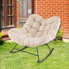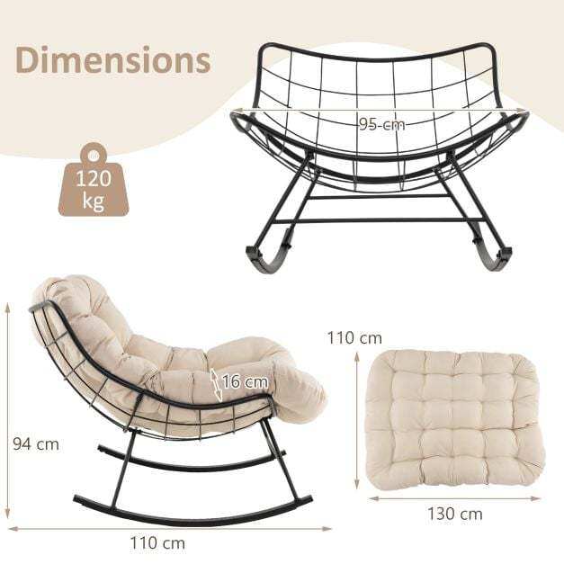 Combines Sturdiness and Comfort: The outdoor rocking chair is crafted with a heavy-duty metal frame, boasting a remarkable 205 kg weight capacity. The 110 x 95 x 94 cm (L x W x H) ergonomically designed oversized seat perfectly aligns with your lap, hip and waist, ensuring a relaxing sitting posture.