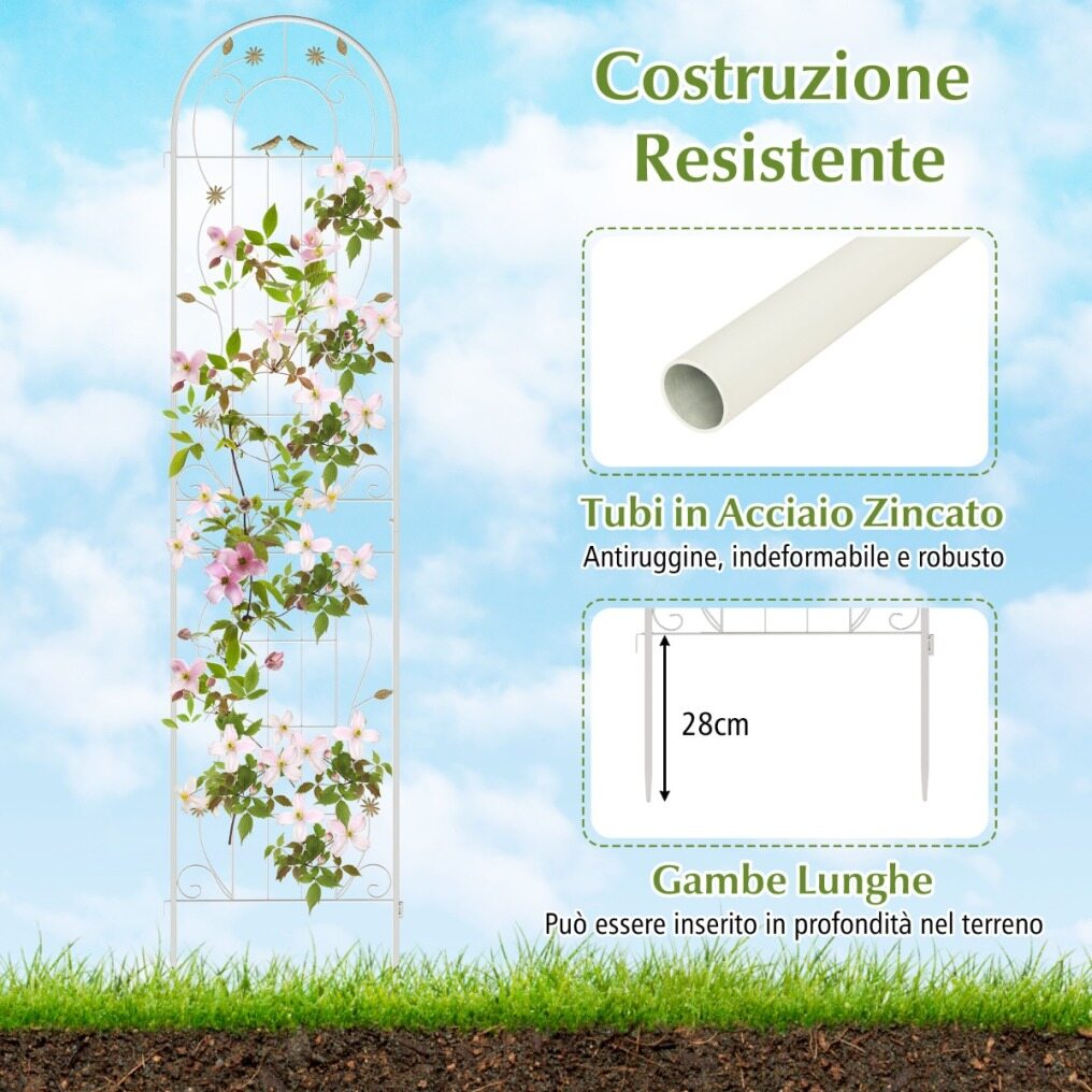 Sturdy Construction: The decorative garden trellis is made of galvanized metal, ensuring unrivaled rust and corrosion resistance to support heavy plants for a long time. The trellis features 28 cm long legs, allowing for effortless insertion into the ground and providing a stable base.