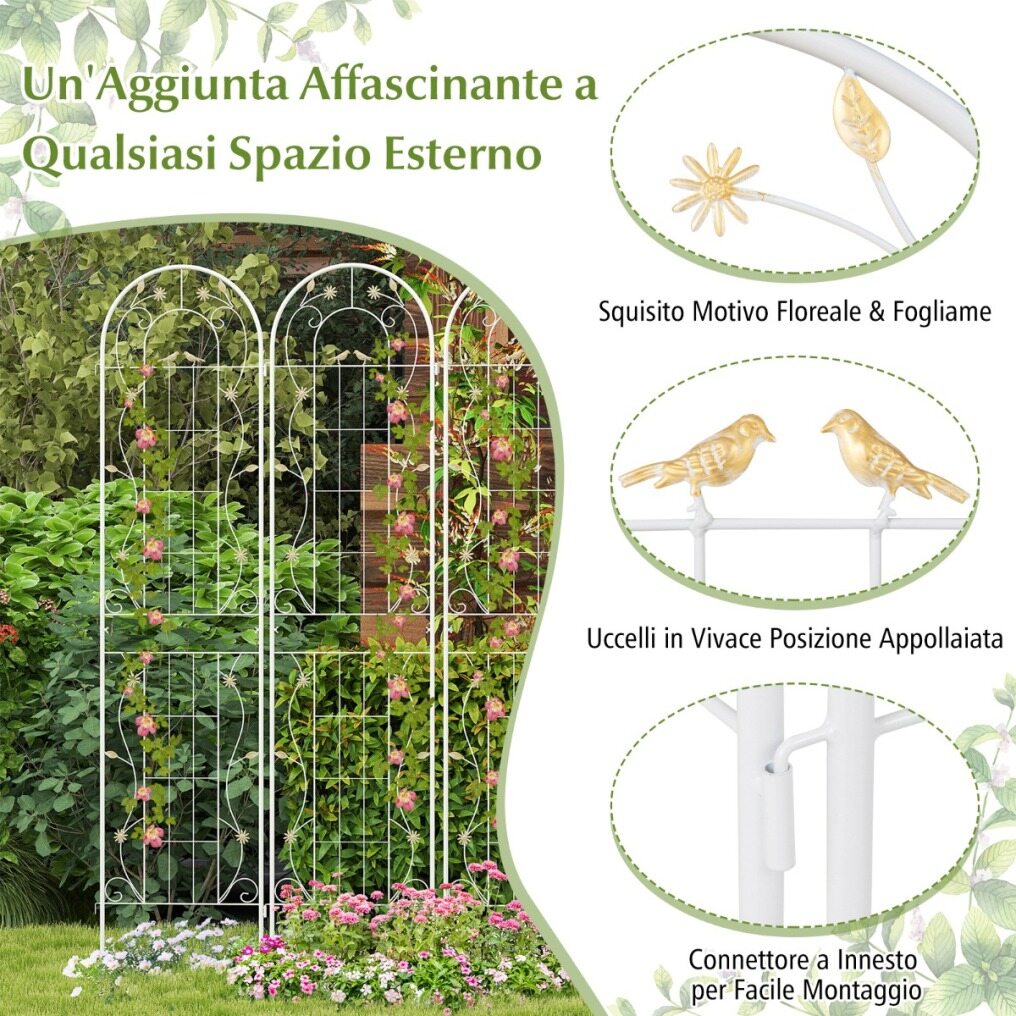 Elegant and Customizable Decoration: Designed with charming birds, flowers, and leaves, this tall garden trellis will effortlessly add a touch of timeless elegance and retro charm to your garden, lawn, or yard. Plus, you have the freedom to arrange multiple trellises in different arrangements to suit your unique needs.