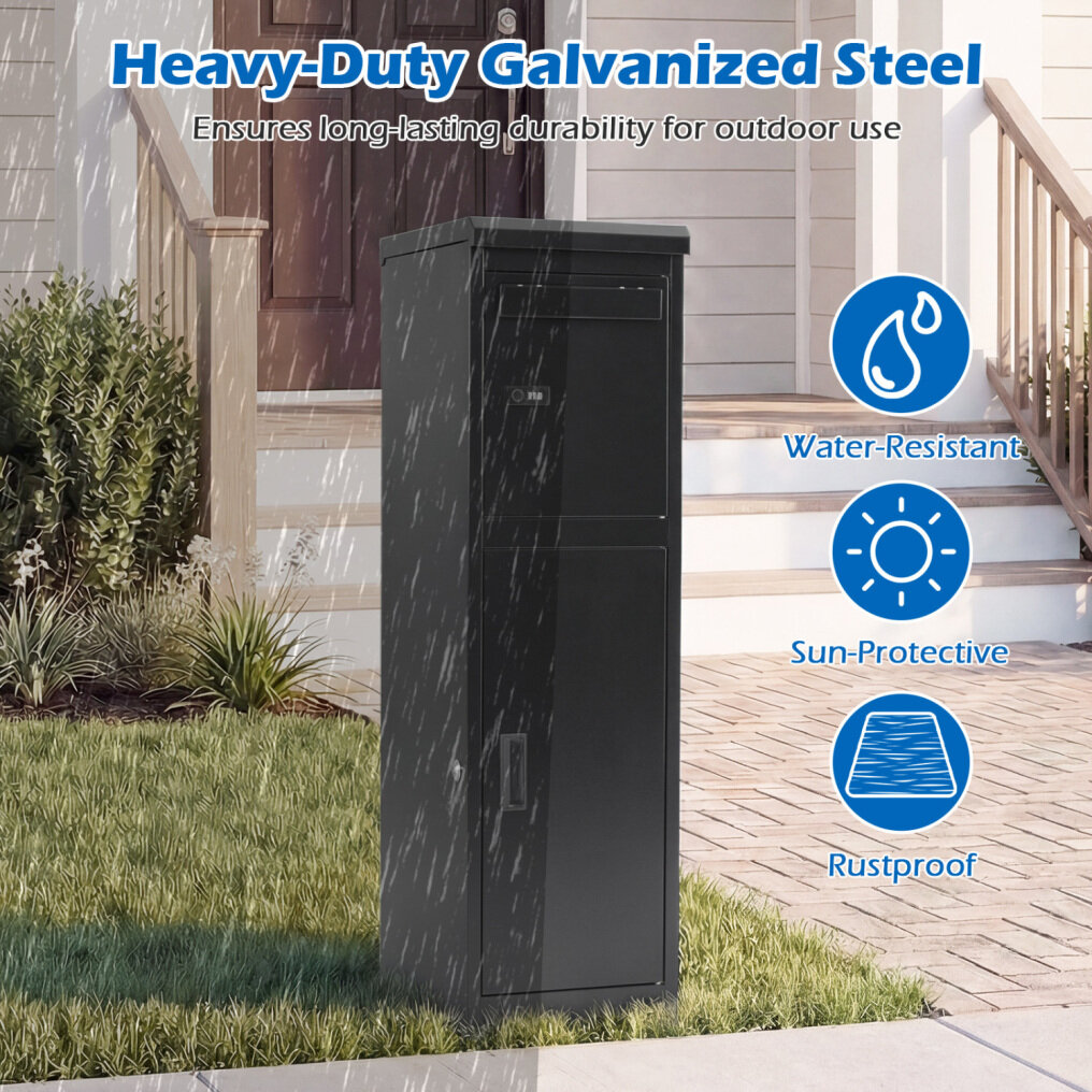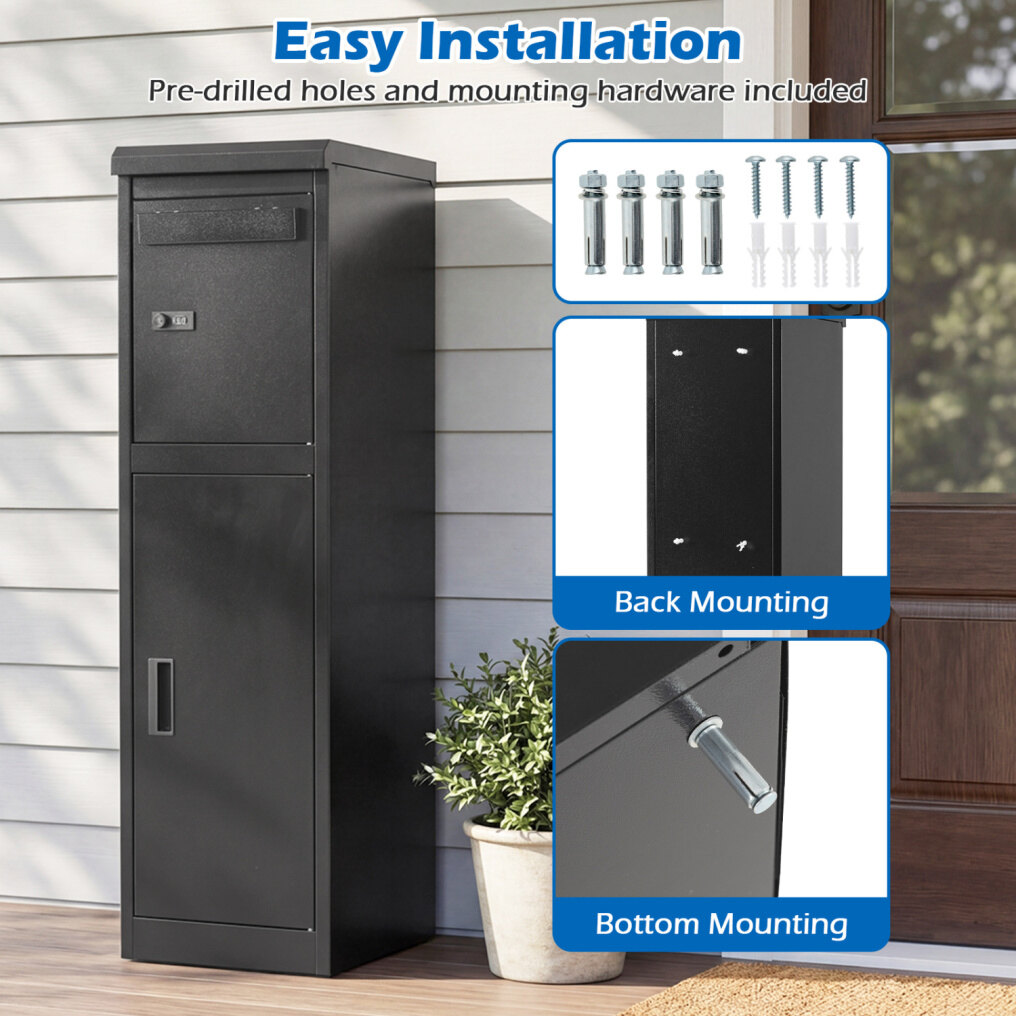 ● Double Lock Protection: The package drop box is equipped with a coded lock for secure mail access. Moreover, the parcel compartment includes a lock with 2 keys, keeping your packages safe from theft or unauthorized entry.