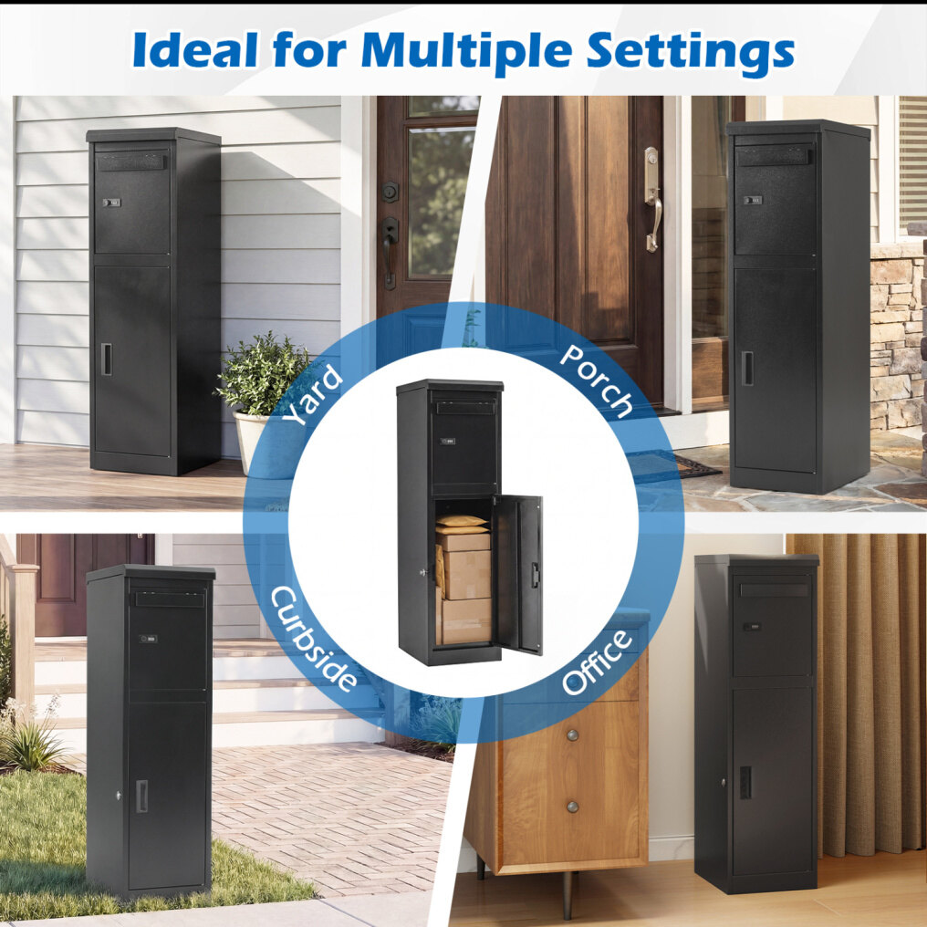● Dual-Compartment Organization: Our package delivery box integrates a mail slot with a separate large parcel storage compartment to keep letters and deliveries neatly sorted. The spacious interior fits small to medium packages with ease, supporting dependable daily drop-offs for homes or offices.