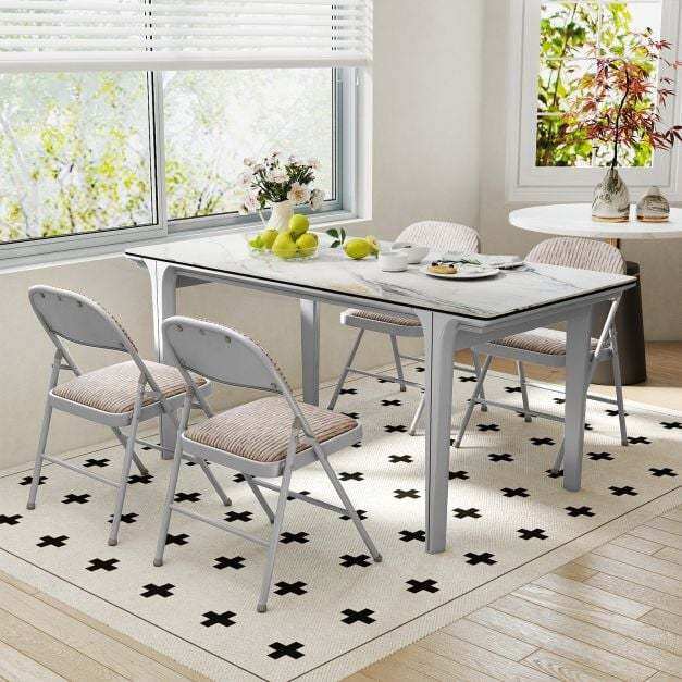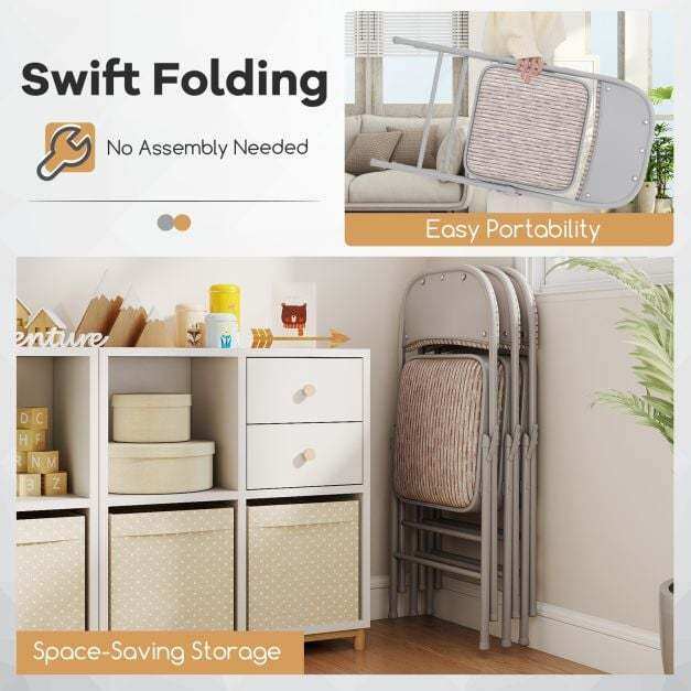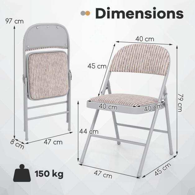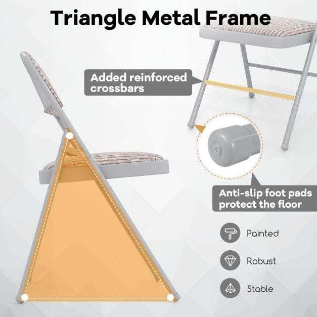 Sturdy Metal Structure: Engineered with a triangle metal frame, each foldable chair provides optimal longevity and supports up to 150kg. It is also equipped with anti-slip foot pads that protect your floors from scratches.