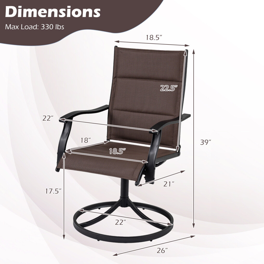 ● Breathable Fabric & Soft Padding: Crafted with quick-drying, wear-resistant fabric and filled with soft foam, these outdoor swivel chairs provide excellent airflow and ultimate comfort, while ensuring long-lasting use.