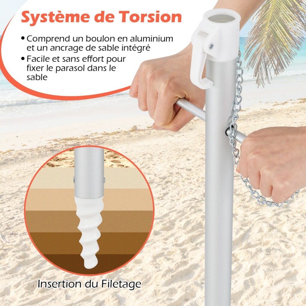 The twist system makes it easy and effortless to fix the parasol in the sand