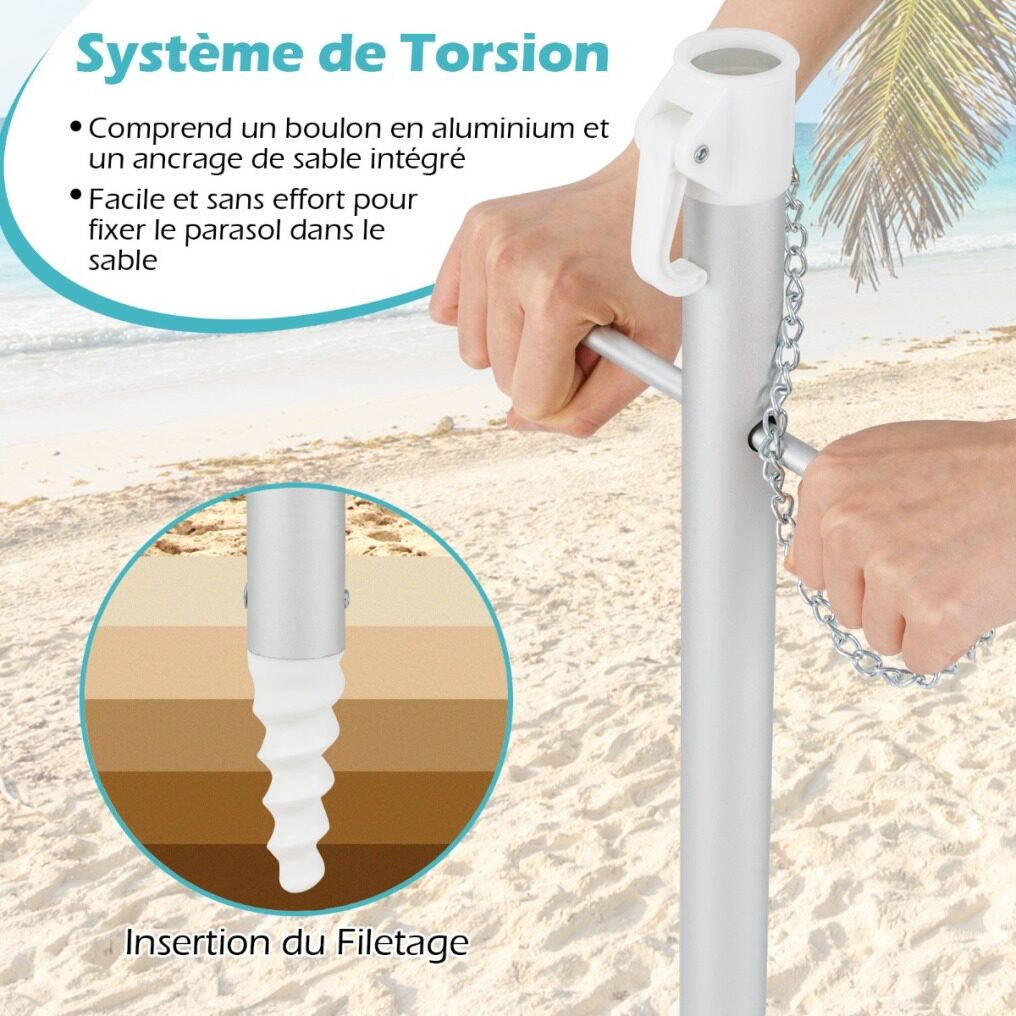 The twist system makes it easy and effortless to fix the parasol in the sand