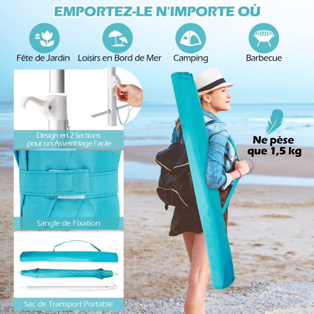 【Portable Design】The parasol can be easily detached into a compact size and stored in the portable carrying bag, weighing only 1.5kg, making it easy to store and carry. In addition, it adopts a 2-section design for easy assembly.