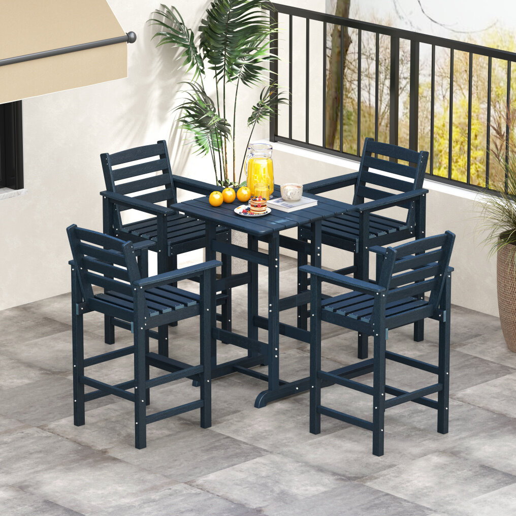 Stylish and Classic Appearance: Combining the timeless charm of Adirondack styling, these bar height chairs present a sophisticated yet traditional look with a faux wood texture that boosts outdoor aesthetics.