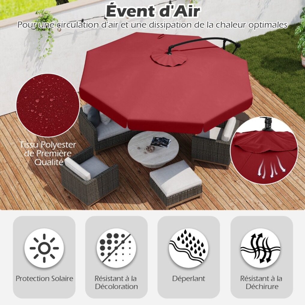 Premium Double-Layer Canopy: Crafted of premium polyester fabric, the hanging umbrella is sun-protective, fade-resistant, and water-repellent, ensuring long-term outdoor use. Furthermore, it adopts an air vent for optimal airflow and heat dissipation as well as enhanced stability.