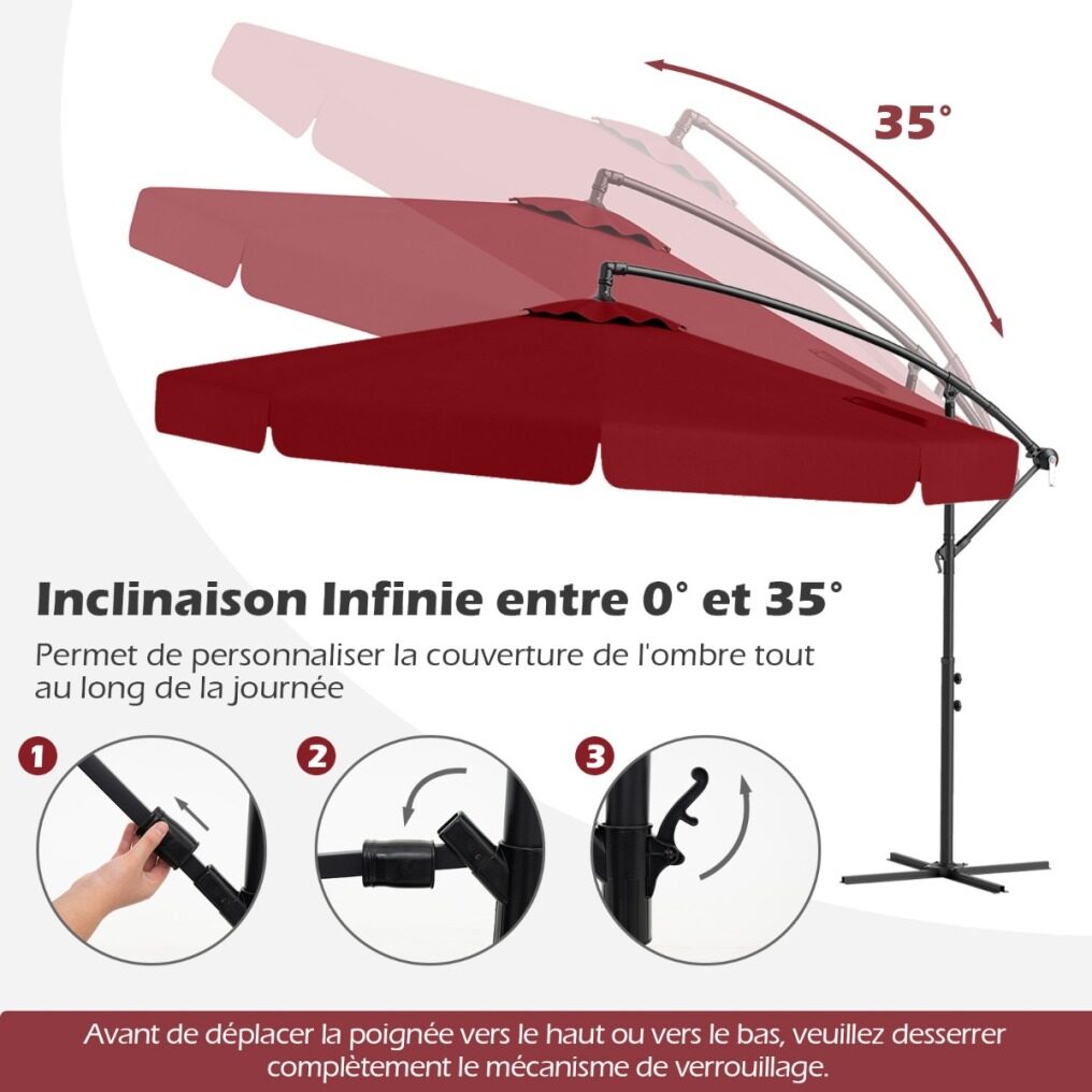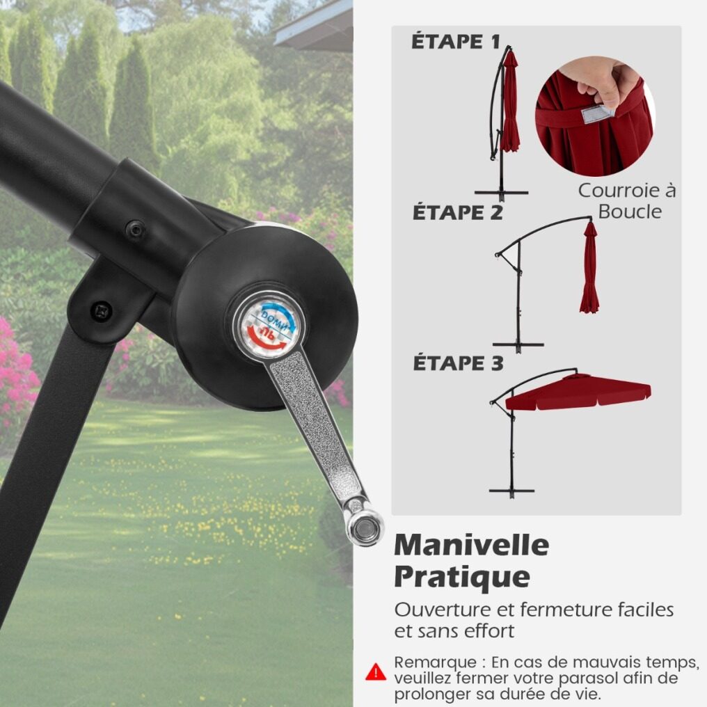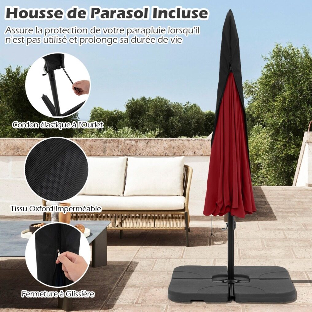 Protective Umbrella Cover Included: This 305 cm offset umbrella comes with a protective cover, featuring zippered enclosure and an elastic hem cord for a snug fit, ensuring your umbrella is shielded from the elements when not in use. Made of waterproof oxford fabric, the umbrella cover is wear-resistant and built to last.