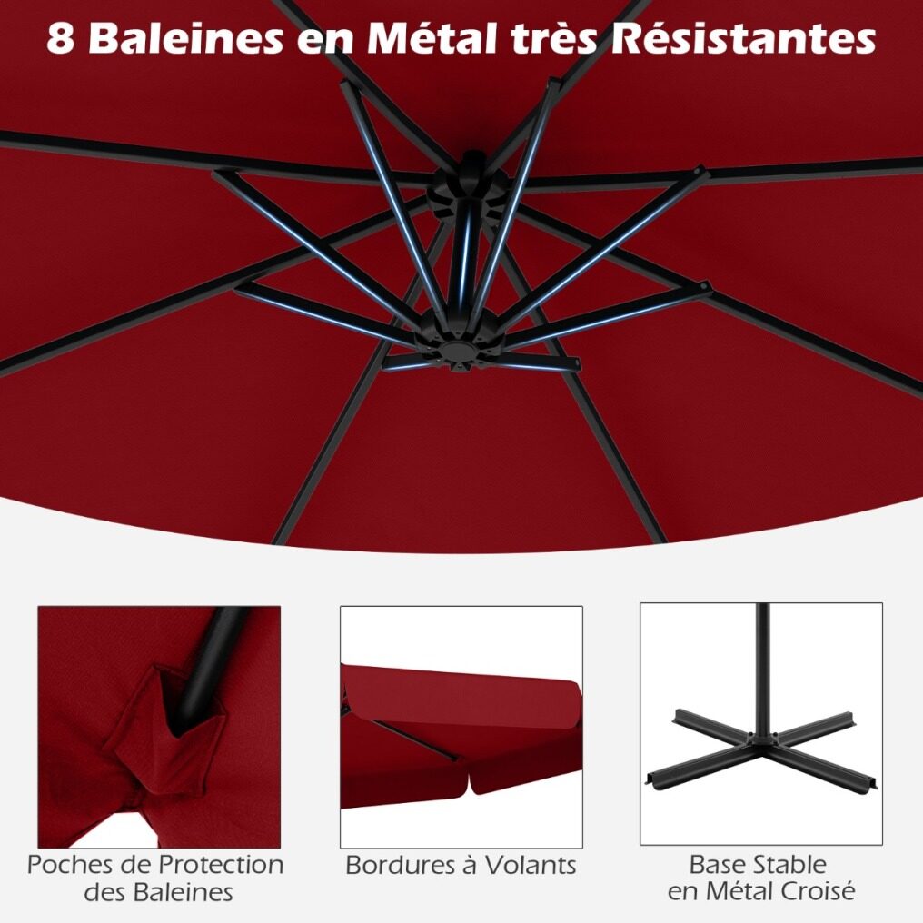 Stable and Reliable Structure: Supported by 8 heavy-duty metal ribs and anchored with a stable crossed metal base, this patio cantilever umbrella promises enhanced durability and stability. Note: the base requires additional weights (not included) for optimum support and safety.