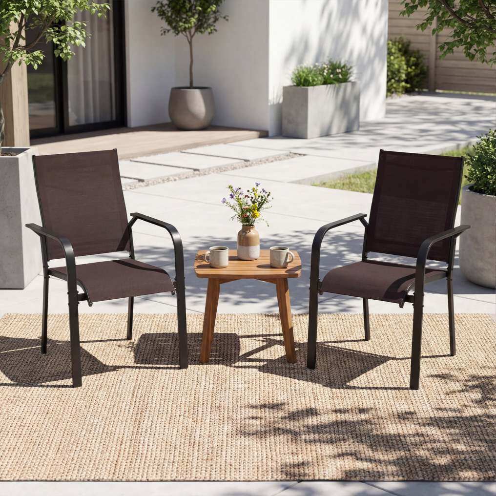 ● Sturdy Metal Construction: These lawn bistro chairs are built with a heavy-duty metal frame, reinforced crossbars, and stable back supports, offering dependable steadiness and a weight capacity of 350 lbs per chair for confident daily use.