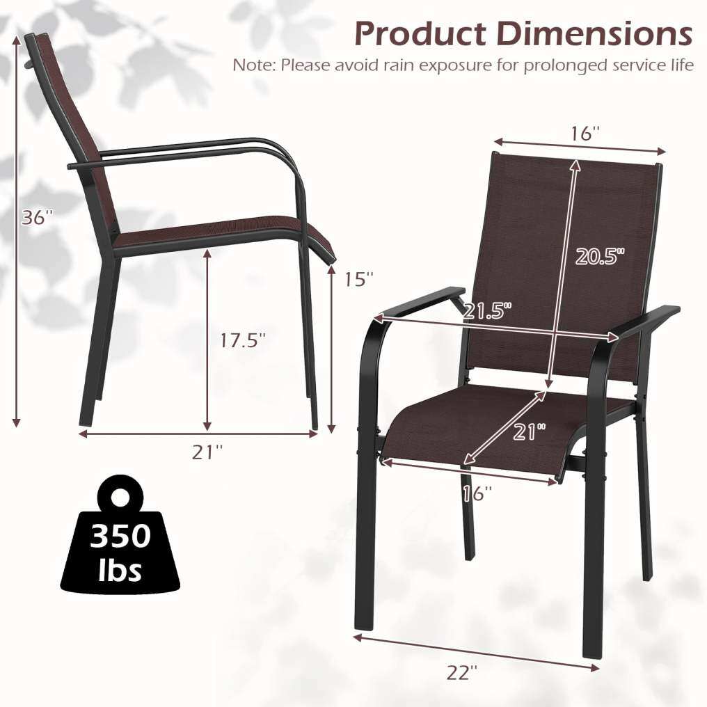 ● Stackable and Lightweight Design: Featuring a convenient stacking design, these garden chairs can be compactly stored when not in use to save space. Additionally, each chair weighs only 10 lbs, making them lightweight and portable to move.