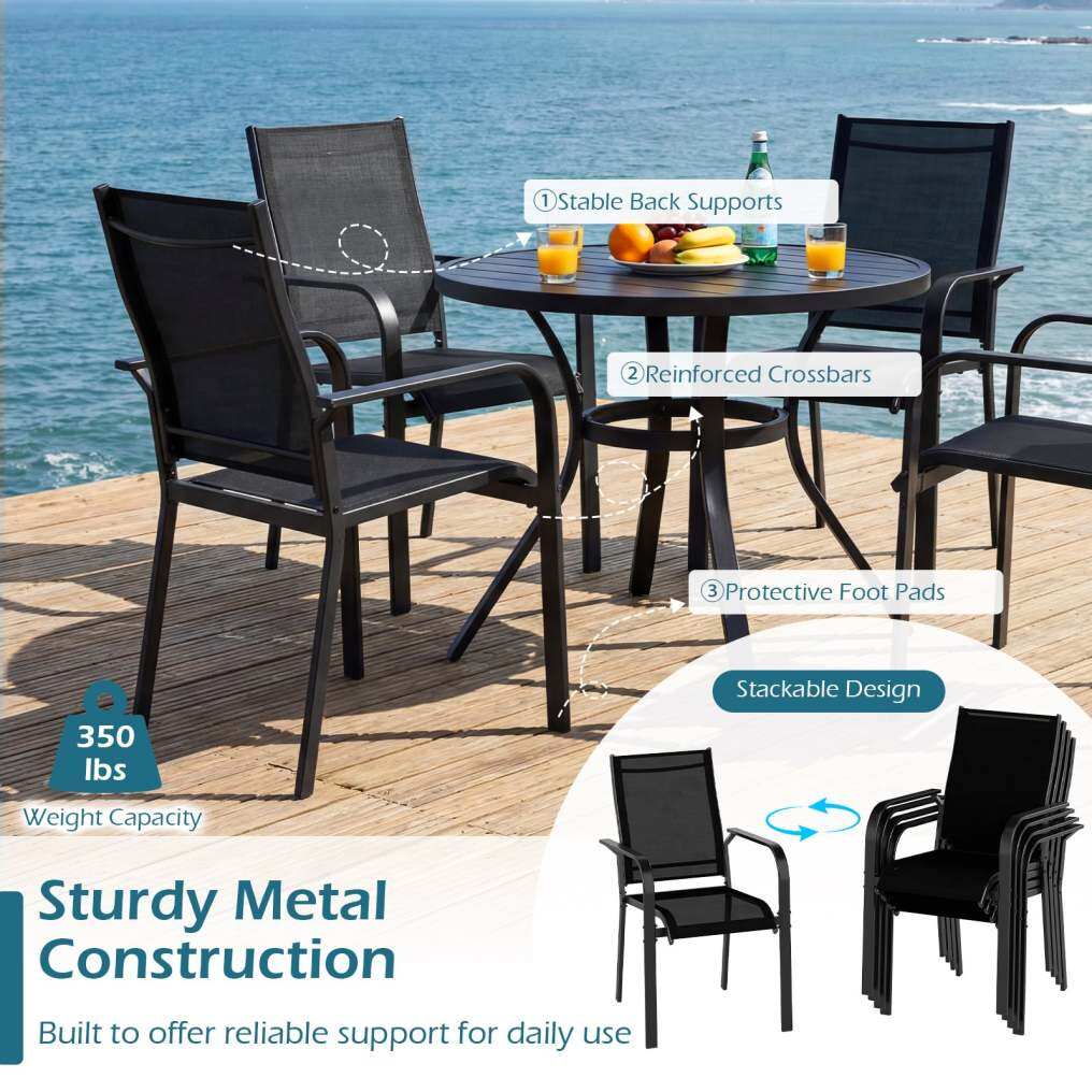 Patio Dining Chairs Set of 2/4/6 Stackable Outdoor Armchairs with Metal Frame-Set of 2