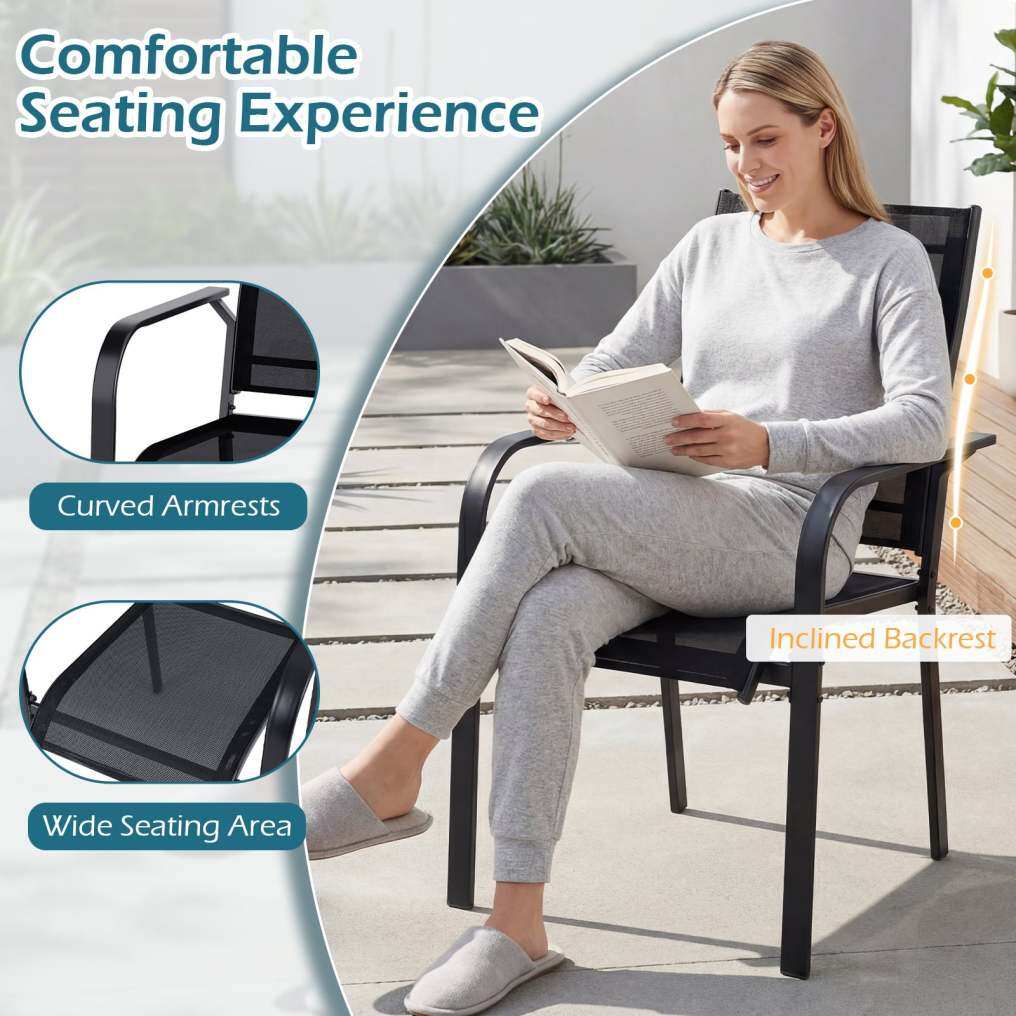 Selected Mesh Fabric: Each outdoor armchair is built with wear-resistant mesh fabric for long-lasting durability. Plus, its quick-drying and breathable qualities promote airflow to help you stay cool and relaxed.