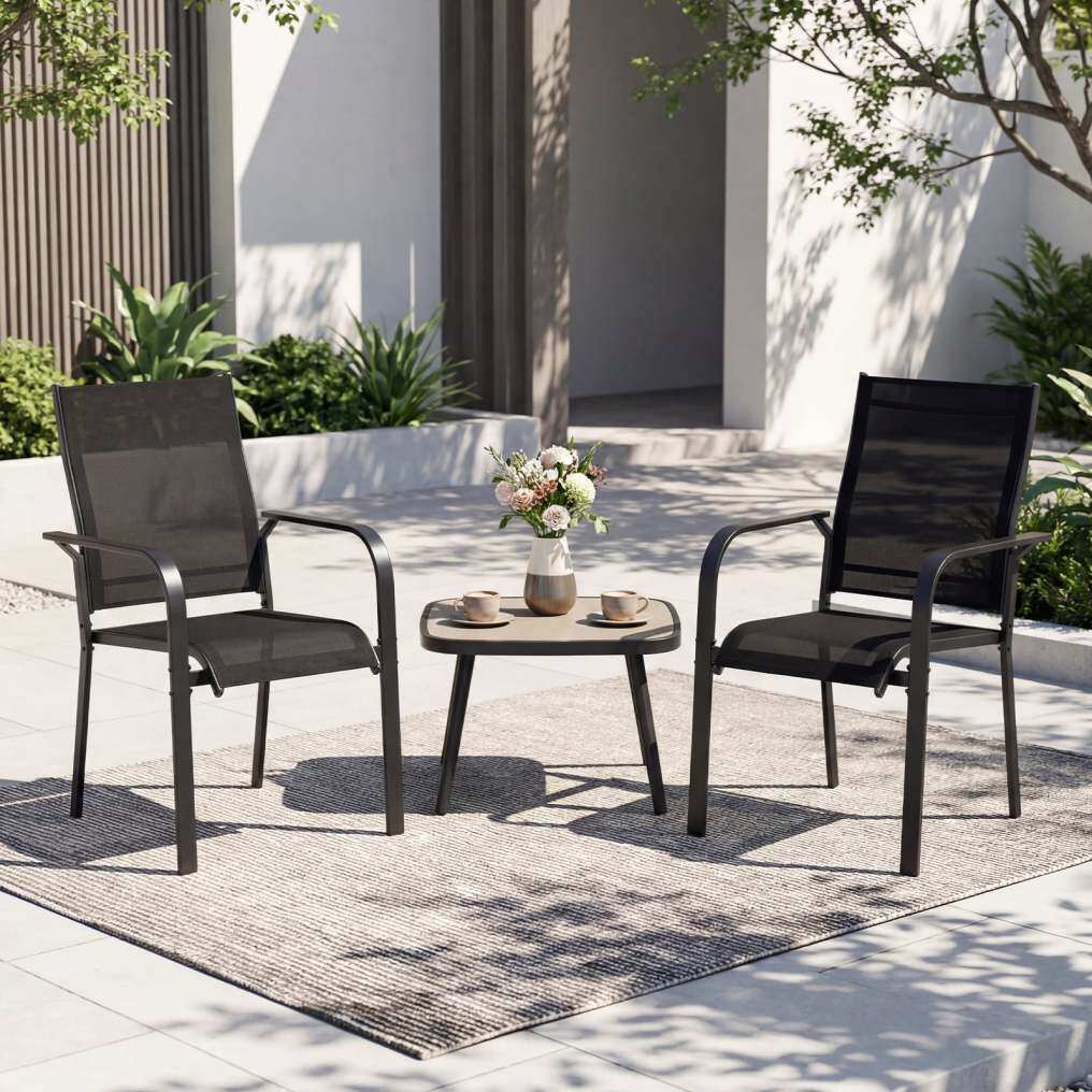 Sturdy Metal Construction: These lawn bistro chairs are built with a heavy-duty metal frame, reinforced crossbars, and stable back supports, offering dependable steadiness and a weight capacity of 350 lbs per chair for confident daily use.