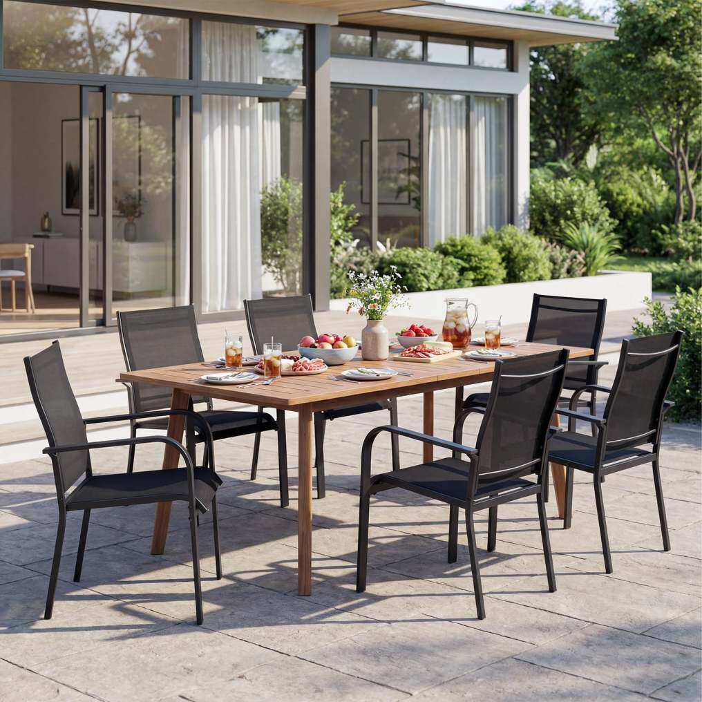 Comfortable Seating Experience: Designed for relaxation, each patio chair features a gently angled backrest, curved armrests, and a wide seating area, allowing you to sit back comfortably and enjoy extended outdoor leisure time.