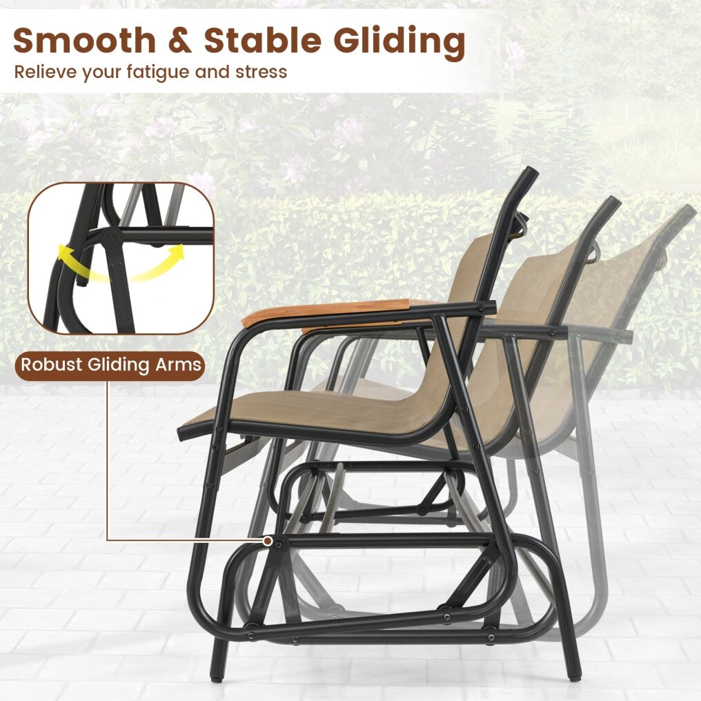 ● High-Quality Seat Fabric: Crafted from breathable, rip-resistant fabric, the seat of the gliding chair is also quick-drying. Such design makes the bench both comfortable and withstand extended outdoor use.