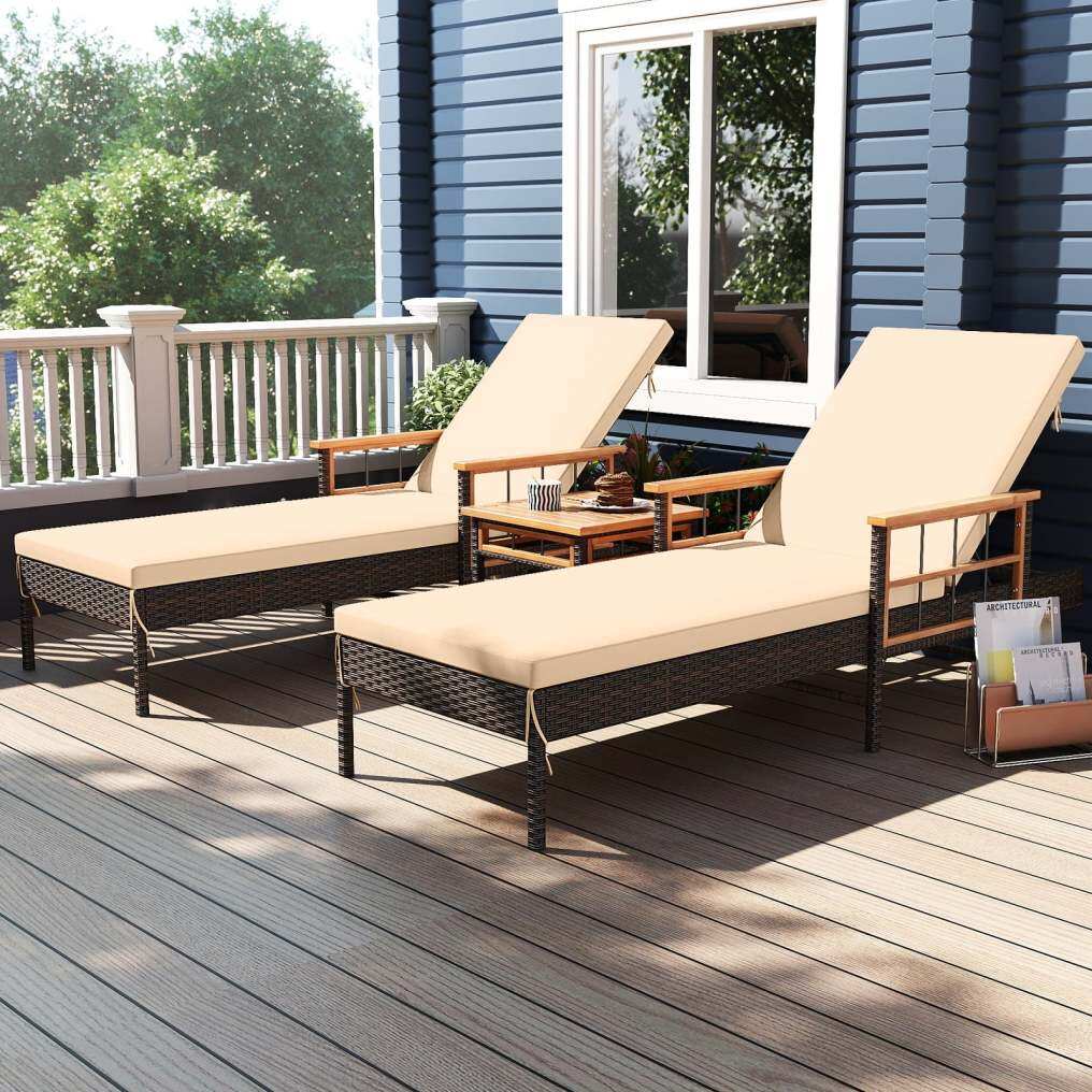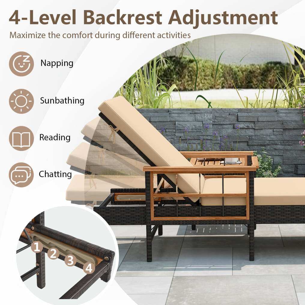 ● Long-Lasting Wicker Appeal: Crafted with stylish mix brown PE rattan which is hand-crafted, sun-protective and breathable, the chaise lounge and side table set adds charming elegance to outdoor relaxing space.