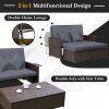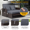 ● 3-in-1 Multifunctional Sofa Set: The combination of the loveseat sofa and ottoman allows you to use this patio set as a double chaise lounge / daybed. 4-level adjustable backrest allows you to sit, recline or lie flat for different outdoor activities. And the 2 retractable side trays make drinks and snacks easy to fetch. Moreover, when the ottoman cushion is removed, you can use this patio set as a double sofa with side table.
