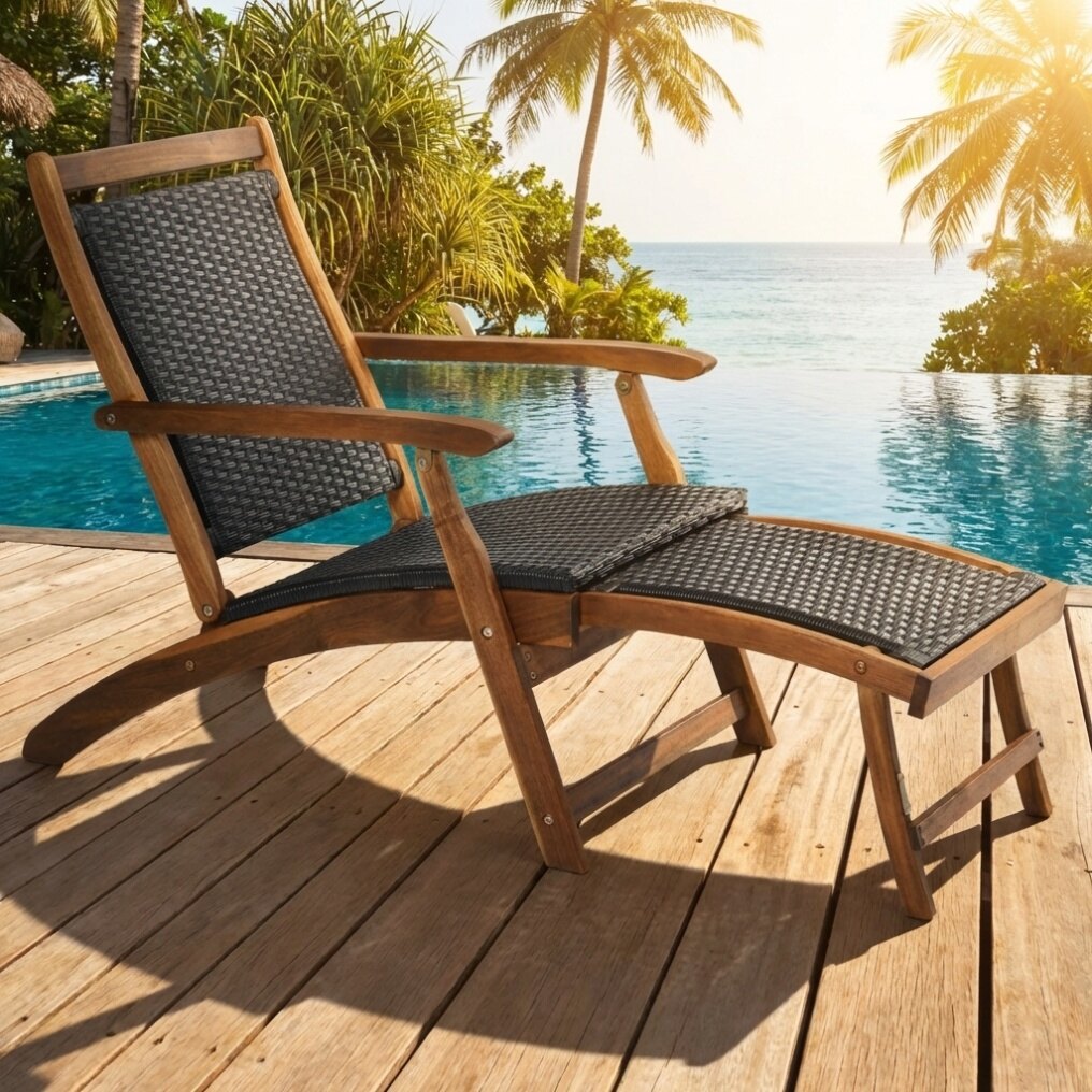 ● Rugged and Stable Wood Frame: Made of premium acacia wood frame, the patio deck chair is quite sturdy and not easy to deform. Weather-resistant PE rattan features good breathability and has the ability to withstand the test of time. Besides, the lounge chair is strong enough to support up to 360 lbs.